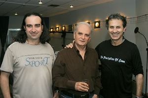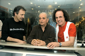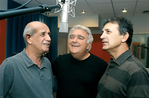 Στη φωτογραφία, οι παραγωγοί του δίσκου Γιώργος Νταλάρας και Μιχάλης Κουμπιός, με τον κορυφαίο έλληνα στιχουργό Λευτέρη Παπαδόπουλο.